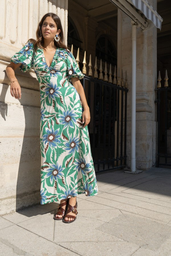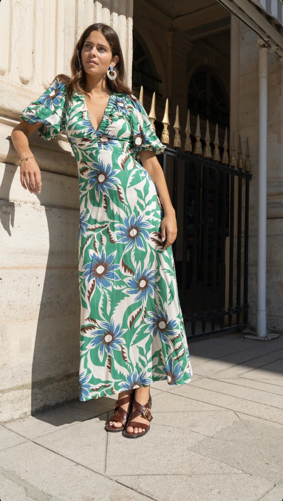 Der wunderschöne Blumendruck und die schmeichelhafte Passform machen dieses hübsche Kleid zu einem starken und zeitlosen Stück.