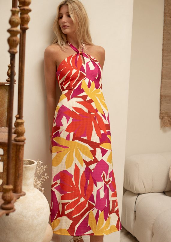 - Amerikanischer Ausschnitt mit Perle, Bindebänder im Rücken.