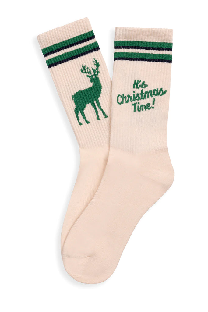 Kuschelig-stylische Bauwollsocken in einem warmen off-white Farbton mit gewebtem Artwork Weihnachtsmotiv (Aussenseite) und Schriftzug "It´s Christmas Time" (Innenseite) in einem harmonischen Dunkelrot. Leicht glitzernde Goldfäden als Eyecatcher runden das Design ab und sorgen für einen extra festlichen Look.