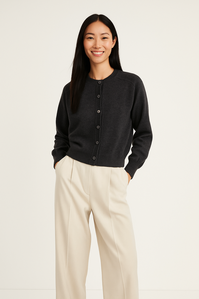 Cardigan in Dunkelgrau aus edler Naturfaser