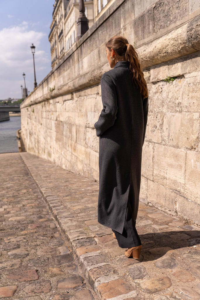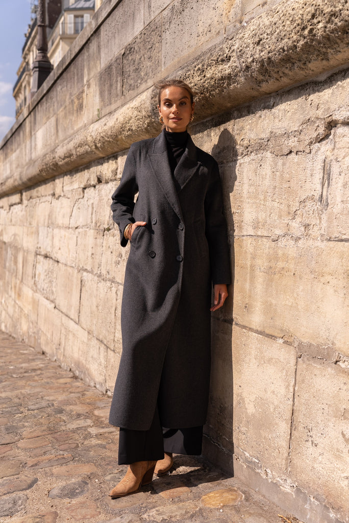 Langer Wollmantel grau