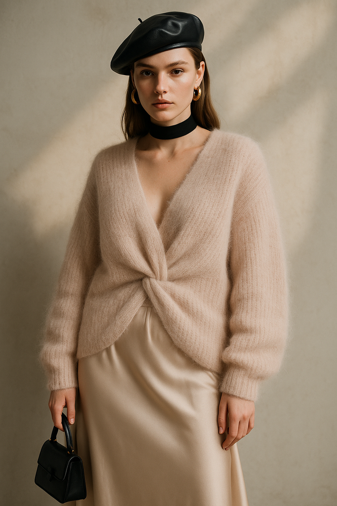Wendbarer Pullover mit Knoten beige