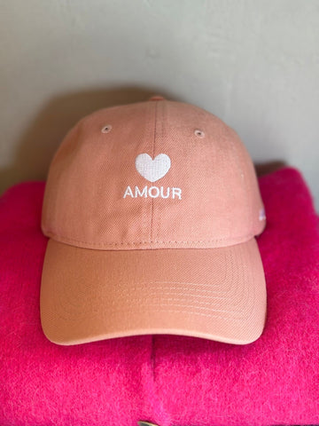 Rosa farbenes Cap mit weisser "Amour" Stickerei.