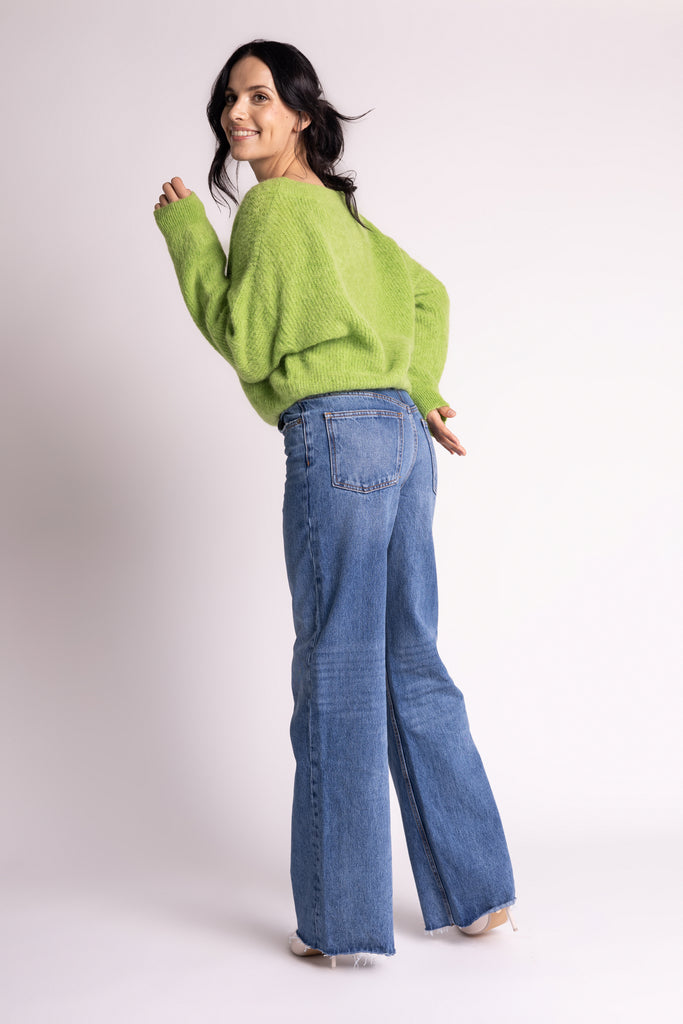 Flauschiger Pullover mit Rundhals hellgrün