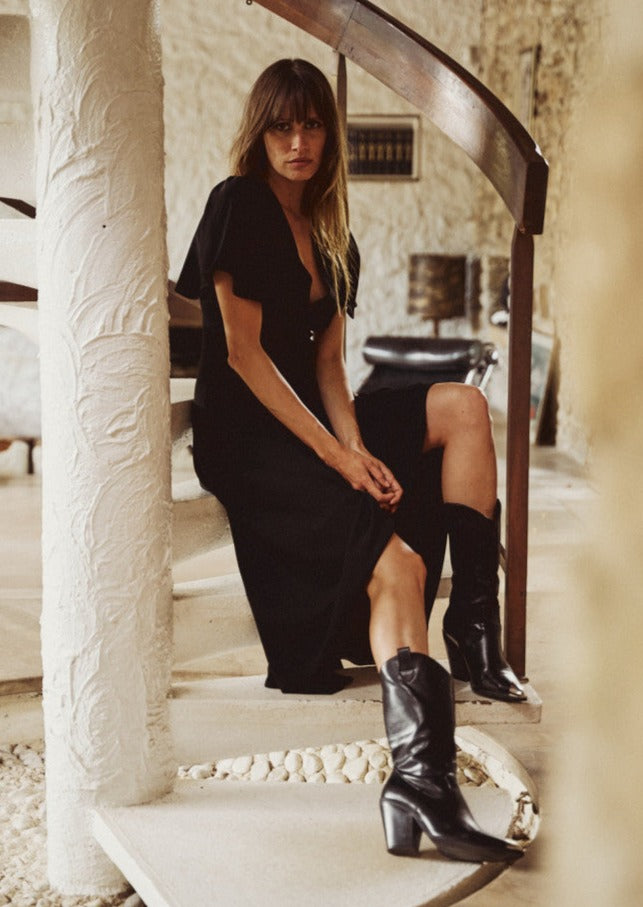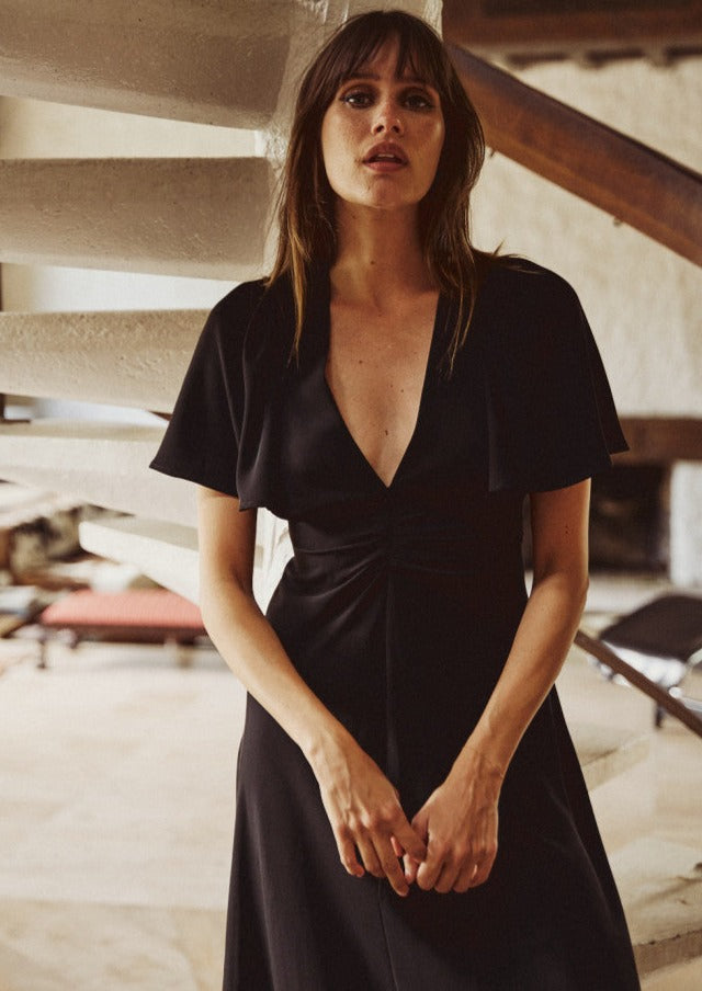 Unser absoluter Bestseller-Kleid des Pariser Labels Opullence. Das Midi-Kleid ist easy zu tragen und kann sowohl mit Sneaker als auch mit Loafer und Stiefelette kombiniert werden. Trage einen lässigen Long-Cardigan, eine kurze Strickjacke oder Deine Lederjacke dazu und Dein Outfit ist von morgens bis abends perfekt.